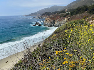 Then we stopped at Julia Pfeiffer Burns State Park for the short (but very painful) hike to see McWay Falls, which (at high tide) can fall directly into the Pacific. This was our turnaround point as we drove back up the Pacific coast highway, marveling at the number of conversion vans similar to ours on the drive (at least 30 plus). We even saw some whales surfacing just off the coast south of Carmel by the Sea. Then we checked into our hotel at the Sand Dollar Inn because we were just too exhausted to try to stealth camp in the van tonight. Temperatures were very moderate along the coast, ranging from 59 to 74 degrees.